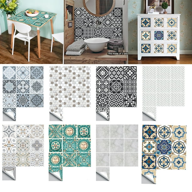 Decorative Tile Stickers Set 10 Units 6x6 Inches Peel Stick Vinyl Adhesive Tiles Backsplash Staircase Home Decor Furniture Decor Easy To Install Diy Walmart Com Walmart Com