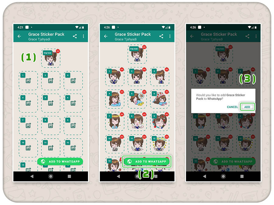 Press Create new Sticker pack and name the sticker pack along with the author name. Your sticker pack is now added to WhatsApp and is ready to use. Here from the sticker section select your sticker pack from the top and then tap on a sticker.